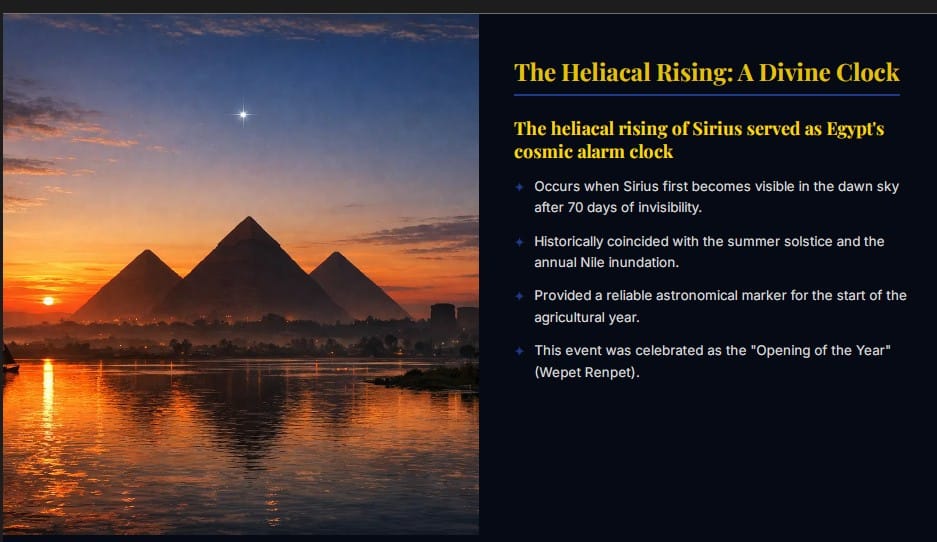 Crucially, the heliacal rising of Sirius coincided with the inundation of the Nile River, a